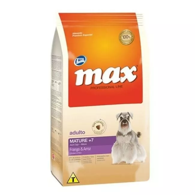 Max Mature, es un alimento Premium Especial nutricionalmente balanceado, desarrollado para perros mayores con más de 7 años de edad. Con mayor aporte de proteínas y equilibrio de las fibras, el producto lleva, además, en su composición, prebióticos, para heces más firmes. Otro diferencial importante para el bienestar de los perros en esta fase de vida es la presencia de condroitina y glucosamina, que contribuyen a las articulaciones más saludables.