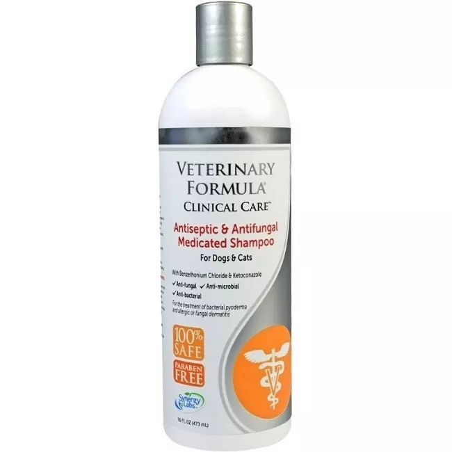 Shampoo antiséptico y antifúngico para perros y gatos, con Cloruro de Bencetonio que funciona como antiséptico, antiinfeccioso y tensioactivo (detergente) contra bacterias, hongos y virus.